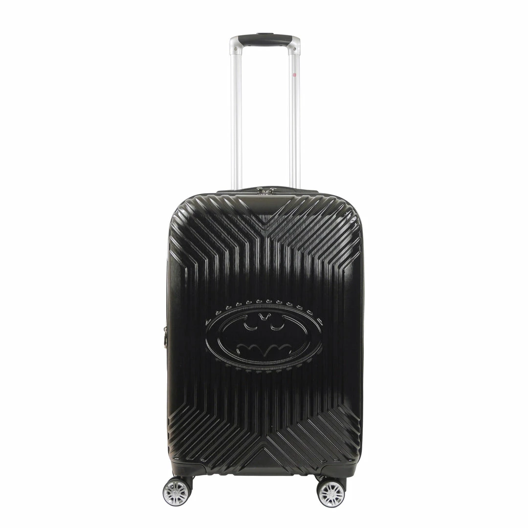 Find your alter-ego as you travel through the skies with this sleek Official DC Comics Batman spinner suitcase set. This upscale molded rolling hard-sided 3-piece luggage set contains 21″ carry-on and 25″ and 29″ checked baggage. This set is perfect for telling everyone about Batman on your next destination vacation.
