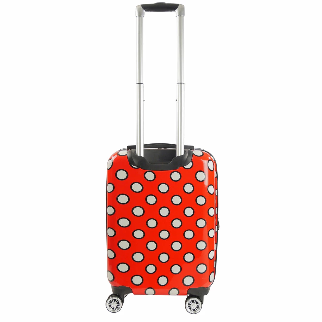 Officially licensed Disney Minnie Mouse rolling 21″ luggage printed Minnie’s head with red and white polka dots.