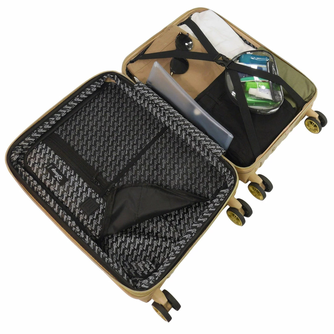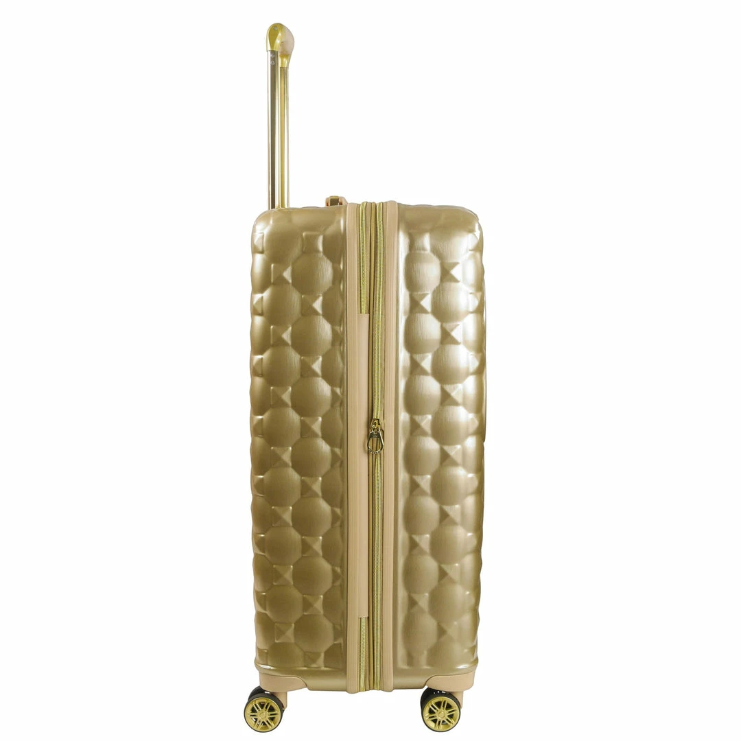 The upscale look of this gold Disney Minnie Mouse 29″ checked-in 3D molded hard-sided expandable spinner luggage is perfect for your next vacation. Featuring the adorable Minnie Mouse bow and ears with a quilted texture, it will be easy to spot at baggage claim. This 29-inch checked baggage suitcase has eight-spinner 360-degree wheels.