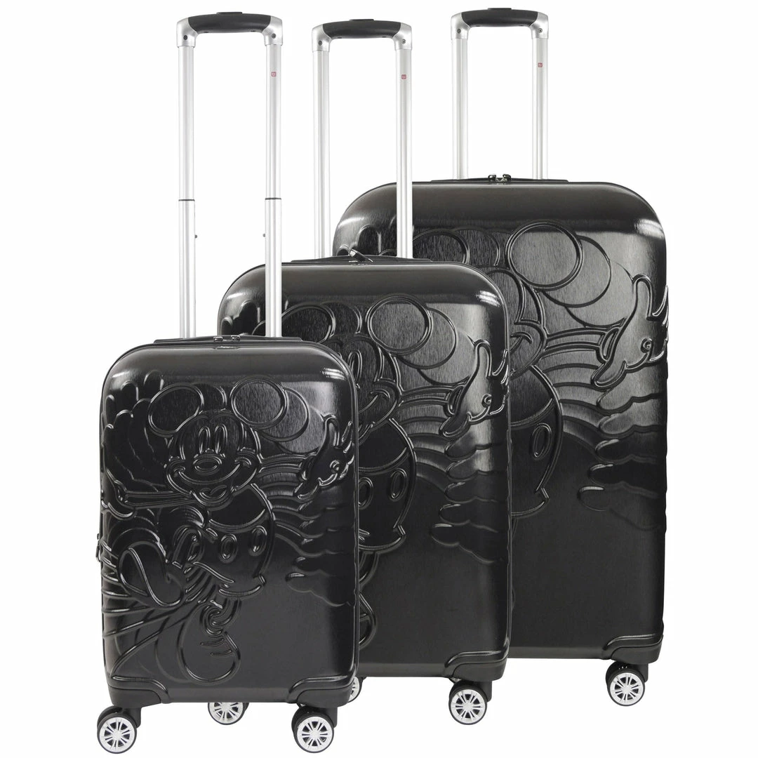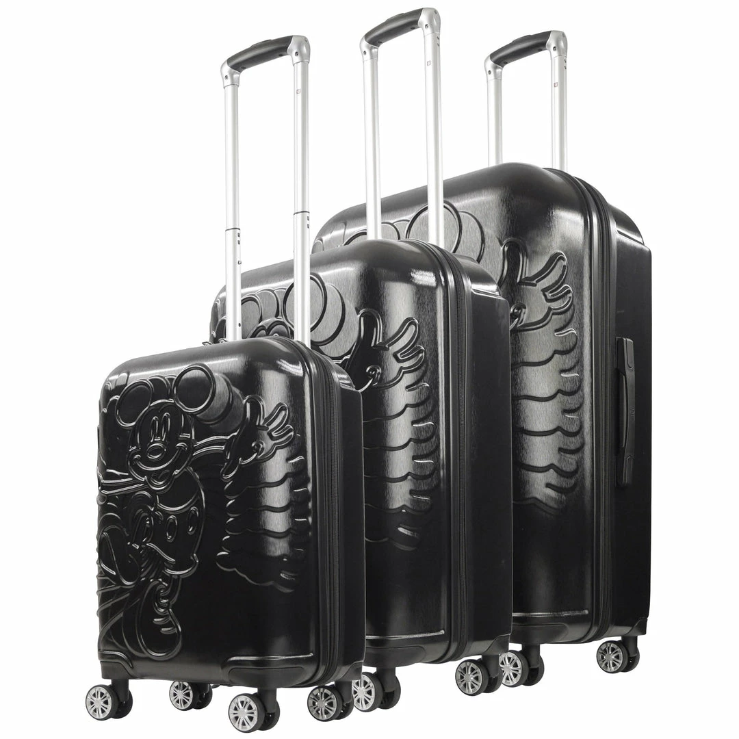 Disney Embossed Running Mickey Mouse is on the front of this 3-piece spinner suitcase luggage set with expandable 21″ and 29″ suitcases in classic black that is perfect for your next destination.