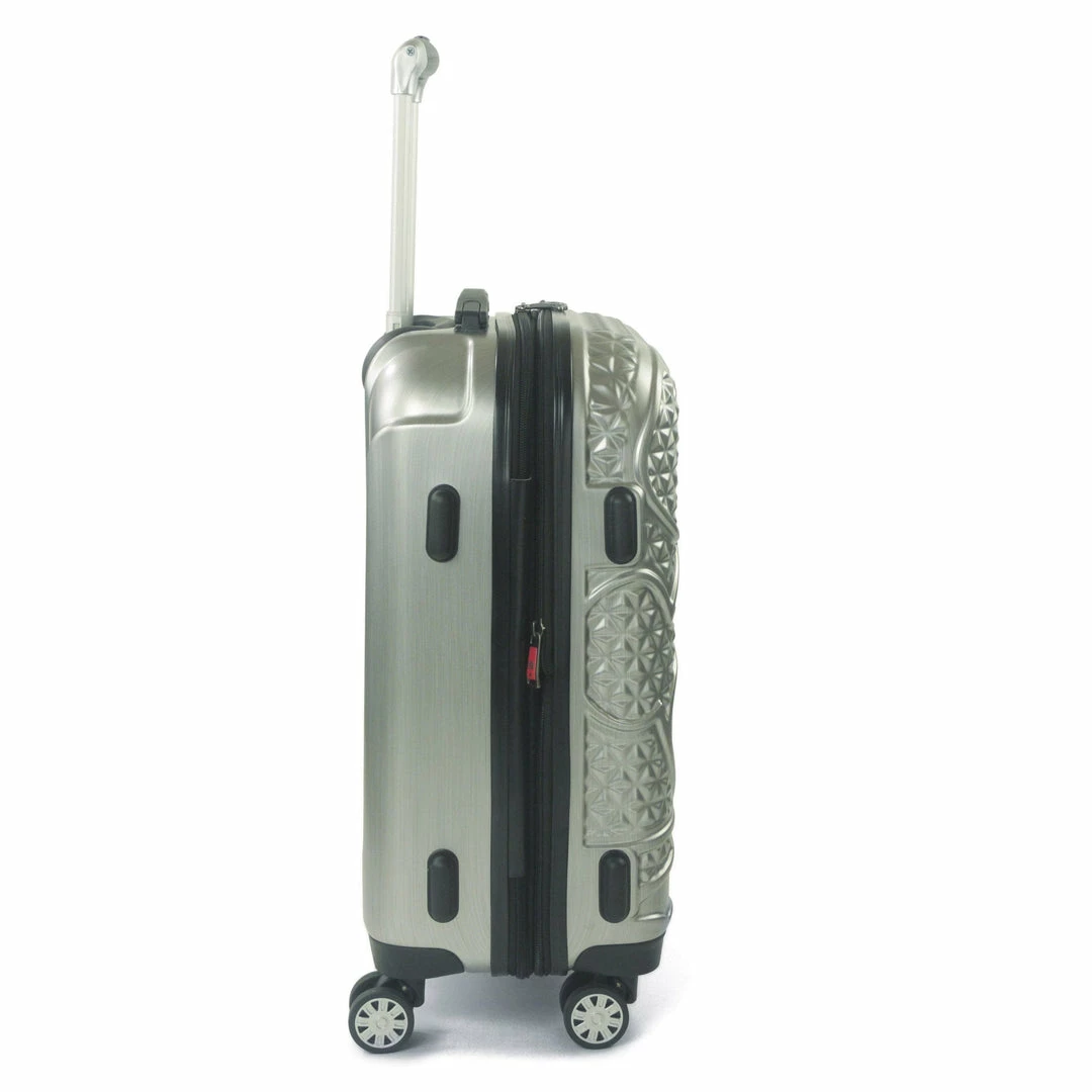 The sleek, upscale design of the textured Mickey hard-sided lightweight carry-on 21″ luggage makes it a welcome addition to any vacation pick your favorite color – rose gold, silver, or black.