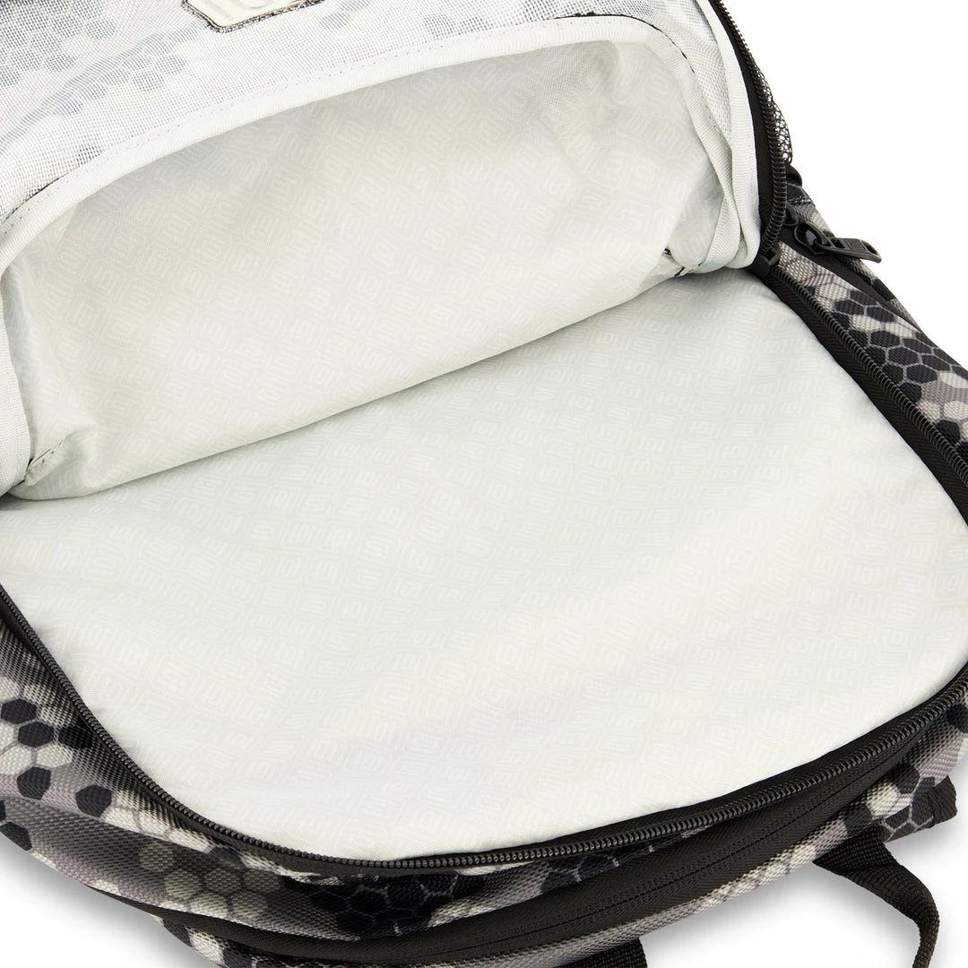 This vibrant print adorns this multi-functional backpack that is quintessential for traveling, weekend getaways, work, or running errands around town. Choose from black grey digital camo or tie-dye-inspired blue.
