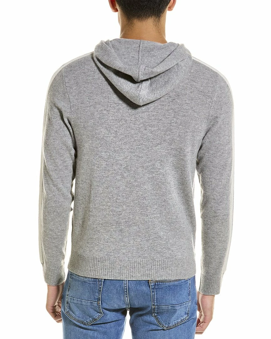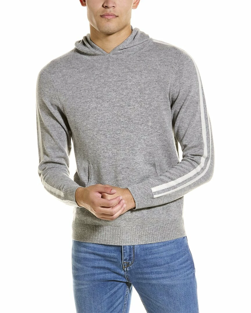 - Striped Wool & Cashmere-Blend Hoodie In Grey With Kangaroo Pocket, Striped Sleeves And Ribbed Trim