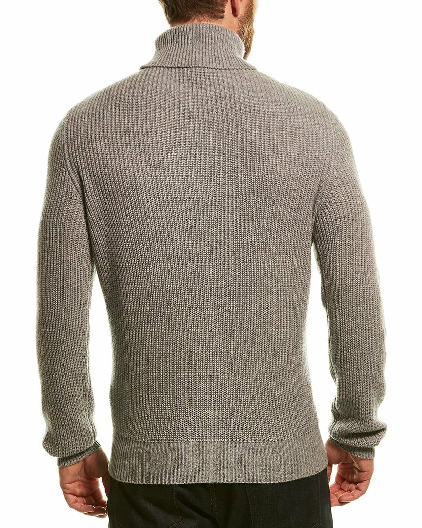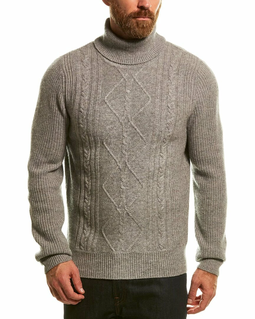- Wool & Cashmere-Blend Turtleneck Sweater In Grey With Shaker Rib Design And Cable-Knit Front