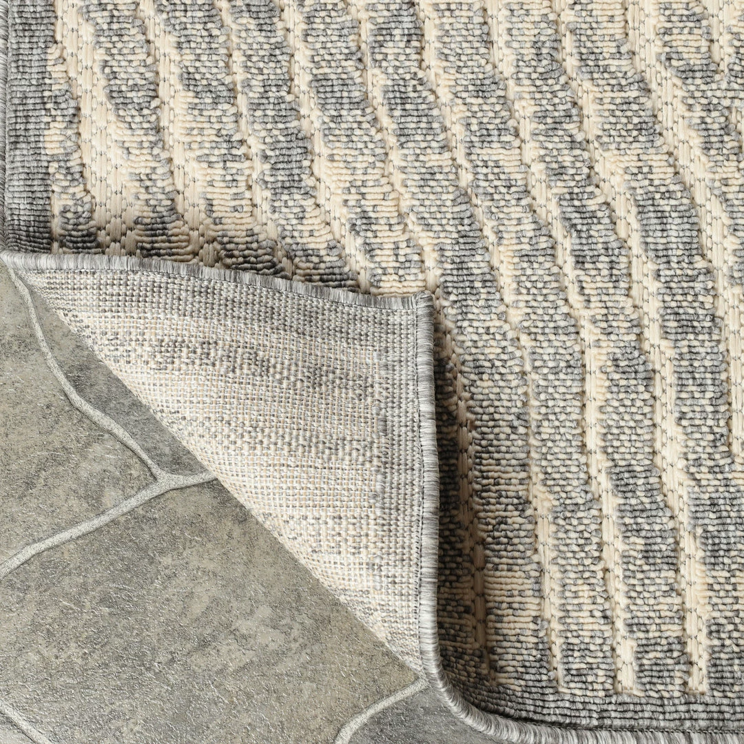 The chic, contemporary style of the Abstract Geometric Modern Indoor/Outdoor Area Rug will breathe life into your favorite space. The family-friendly 100-percent Polypropylene construction can handle some of your most high-traffic areas, including your outdoor spaces. Variegated lines come together to form this abstract geometric pattern, which displays a varied high-low loop pile height to give this rug a carved appearance and bring visual interest and a texture-rich feel to this contemporary area rug. This piece boasts a 0.24-rug thickness at its highest that cleans easily, can fit under most doors and allows chairs sitting atop this rug to slide easily. Crafted to weather the elements while remaining soft and long-lasting, this lovely rug is sure to add style to your patio, deck, or any indoor living space.
