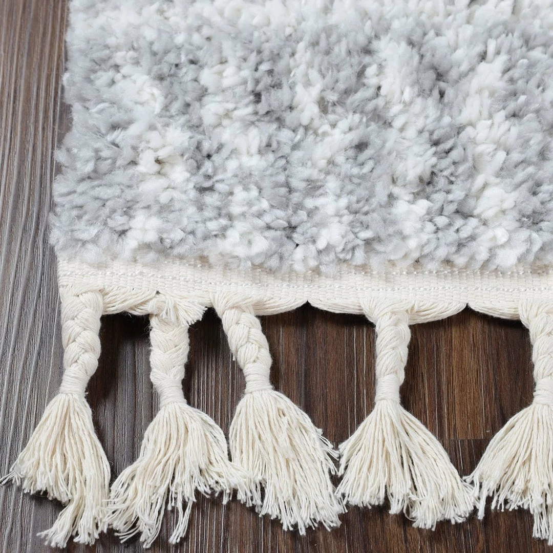 Superior Lorelei Bohemian Geometric Indoor Polypropylene Plush Shag Area Rug with Tassels