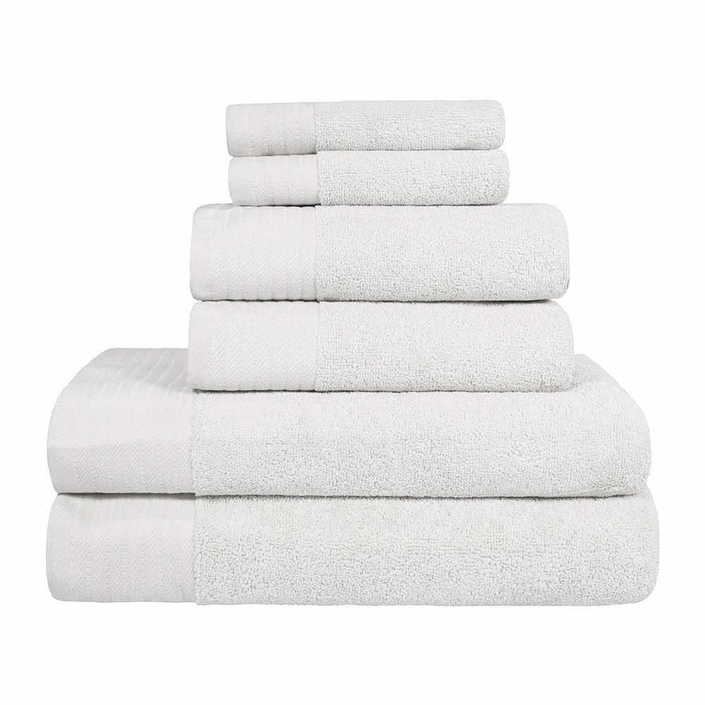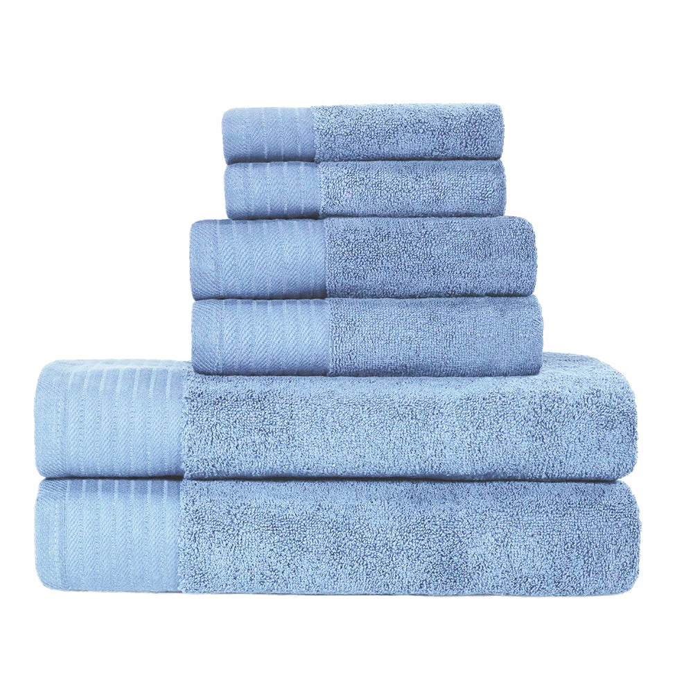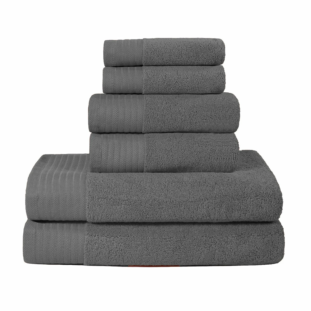 - COZY, ABSORBENT and PLUSH – This set includes 2 face towels 13″ x 13″ each, 2 hand towels 16″ x 28″ each, and 2 bath towels 28″ x 54″ each; the cozy GSM (grams per square meter) weight and single-ply terry loop construction make them stronger and more absorbent than other varieties of cotton towels. OEKO-TEX Certified to ensure environmental and safety standards