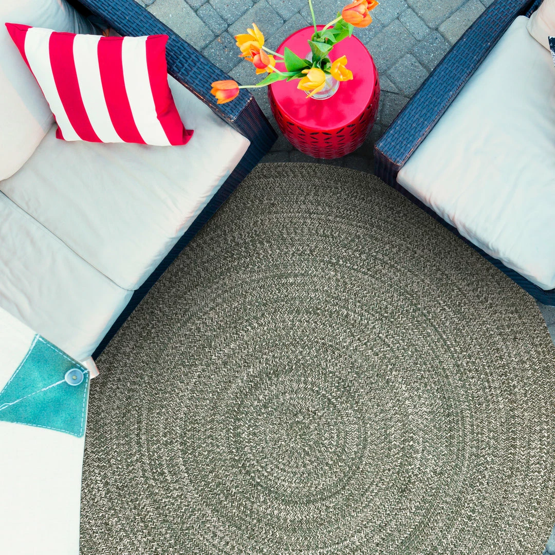 The Braided Multi-Tone Area Rug is the perfect foundation for any room in your home. This piece displays a hint of subtle shimmer through the unique two-tone braided weave design, which is available in an array of vibrant and neutral color options, to offer versatility and modernity to your interiors. The classic yet casual styling of this rug is ideal for multiple décor styles ranging from coastal to modern to rustic and everything in between. This area rug is crafted from Polypropylene and Polyester and features a flat pile height that can handle the most frequented areas of the home including patios, pool decks, living rooms, hallways, and bedrooms, and is available in a variety of oval and round rug sizes.