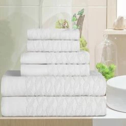 - Set includes – Two (2) Face Towels, two (2) Hand Towels, and Two (2) Bath Towels