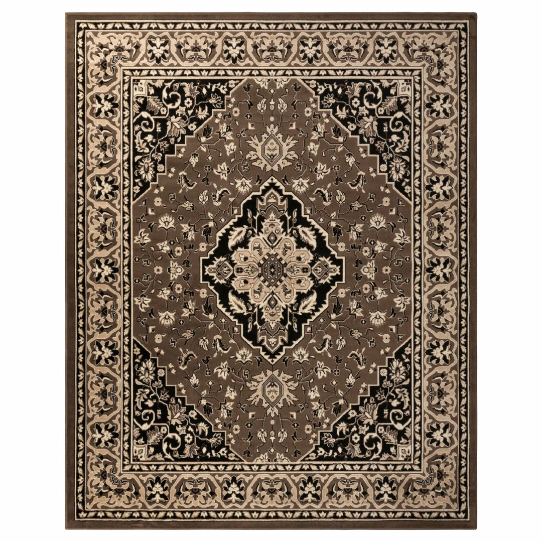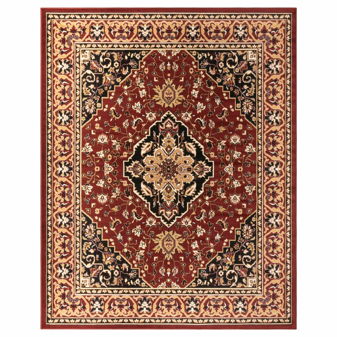 The Glendale Traditional Oriental Area Rug brings classic styling to your home by featuring an Oriental-inspired medallion design and an accenting border. Crafted from premium 100-percent Polypropylene fibers, this rug can handle the busiest rooms of your home while remaining cozy underfoot. Its exotic look enhances a myriad of decors, including traditional and eclectic. The 0.31-inch rug thickness cleans easily, can easily fit under most doors, and allows chairs sitting atop this rug to slide easily. Finished with a well-made jute backing, this rug is a long-lasting and durable option for homes with children and pets.