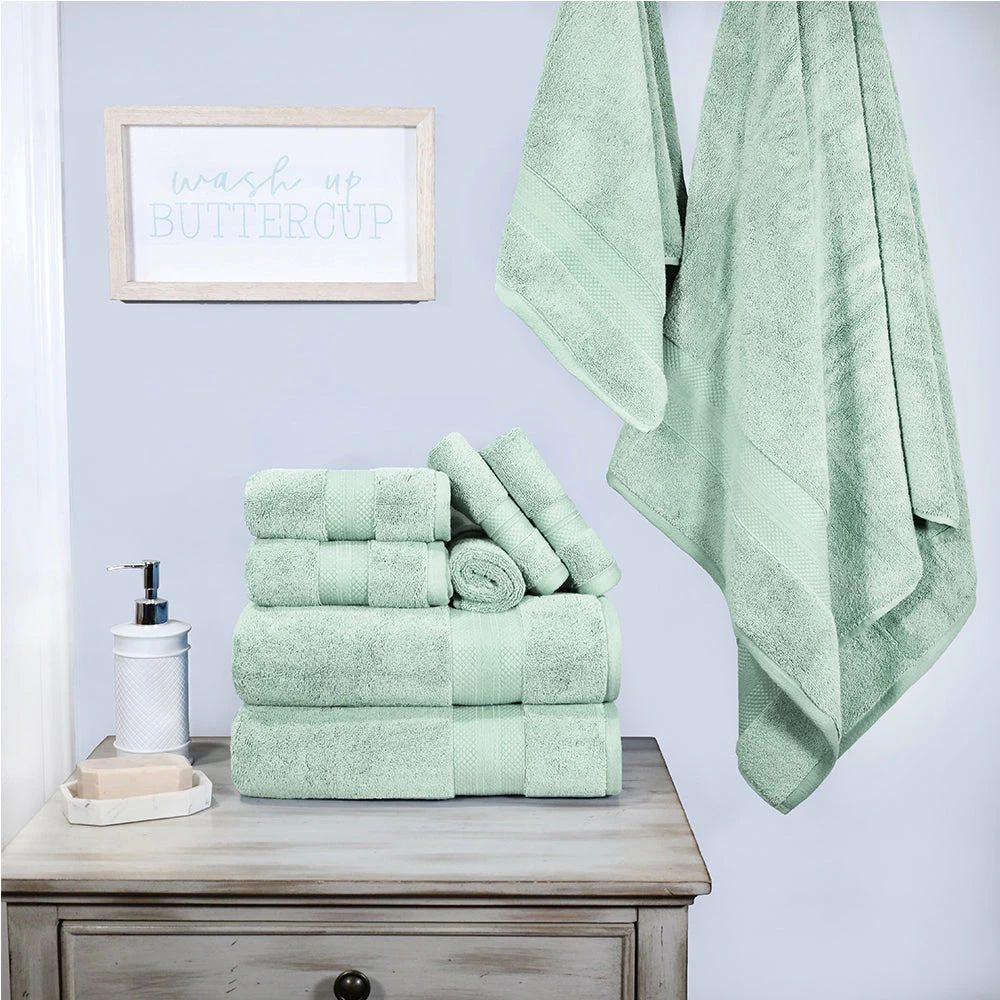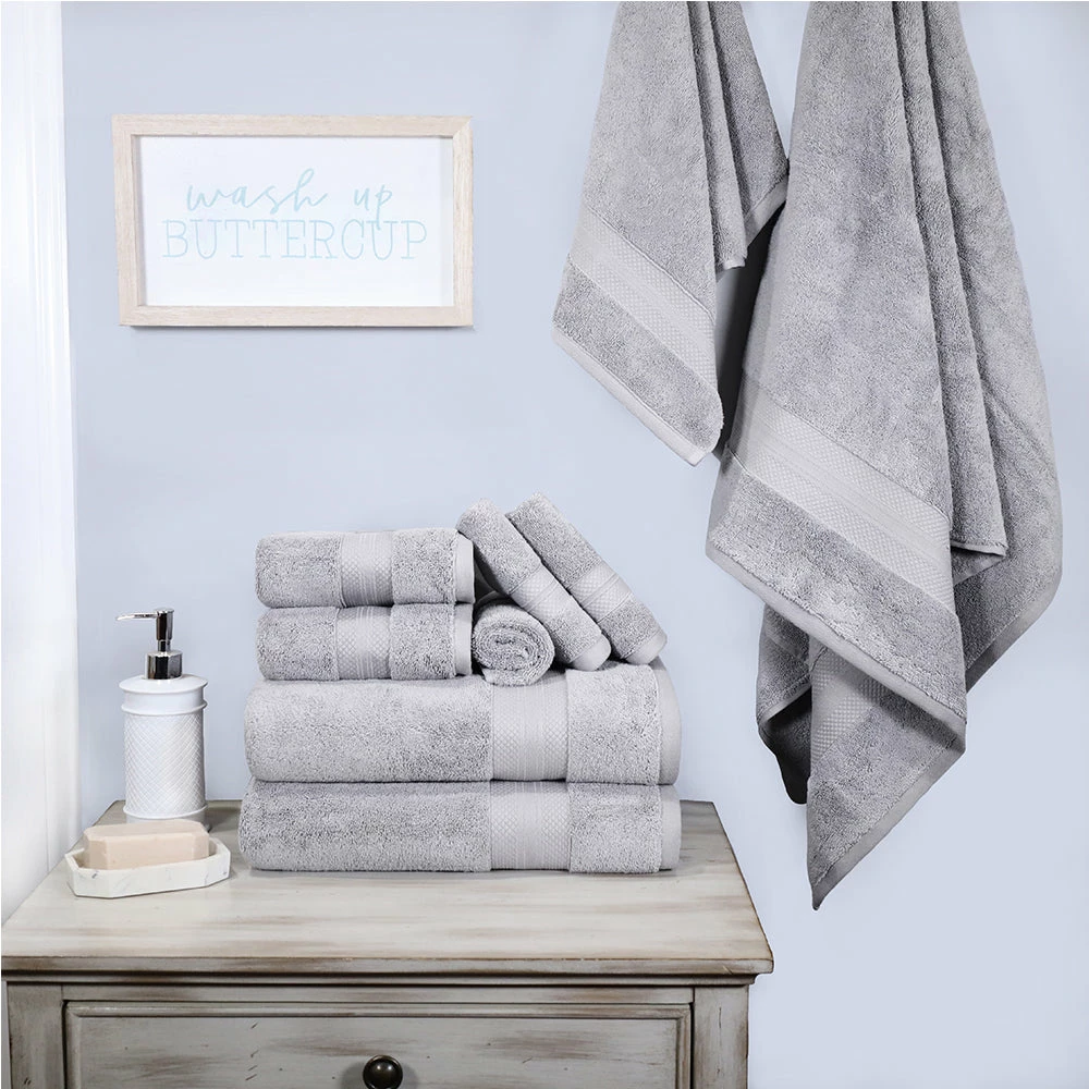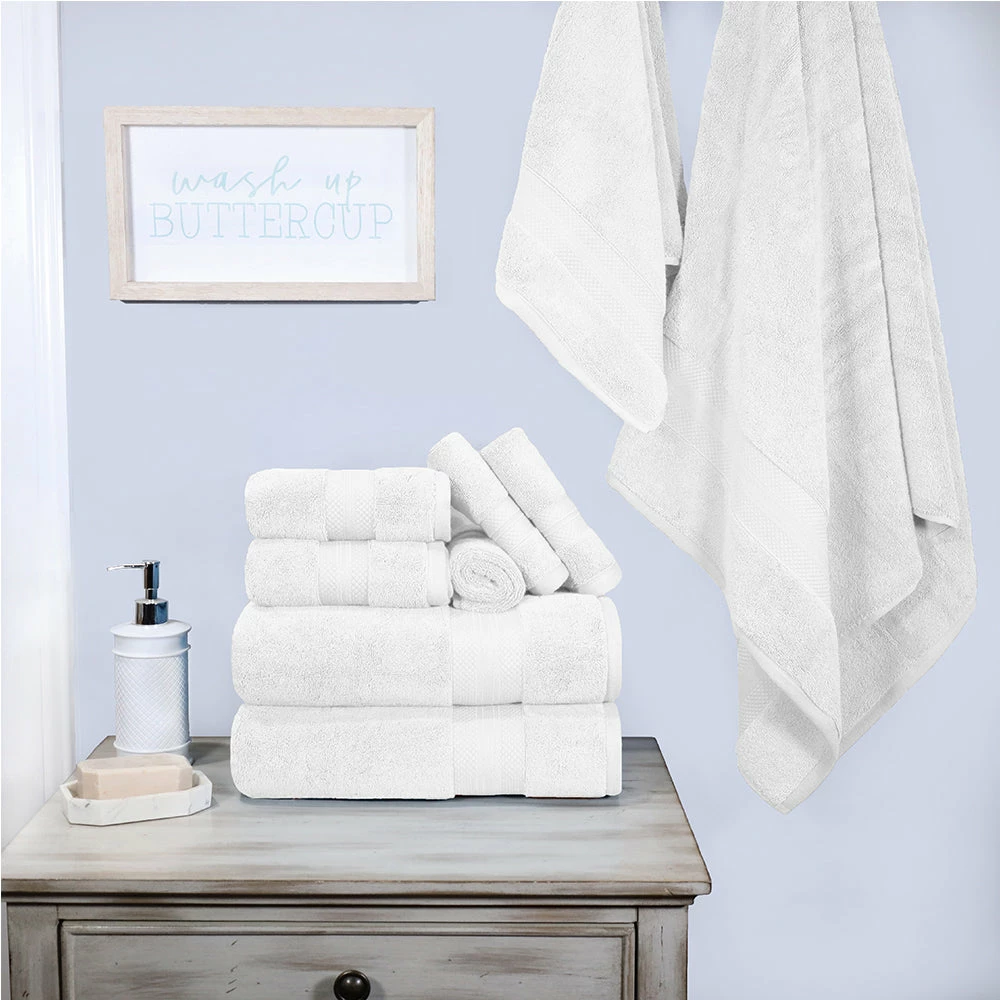 - COZY, ABSORBENT and PLUSH – This set includes 2 face towels 13″ x 13″ each, 2 hand towels 16″ x 28″ each, and 2 bath towels 30″ x 54″ each; the cozy GSM (grams per square meter) weight and single-ply terry loop construction make them stronger and more absorbent than other varieties of cotton towels.