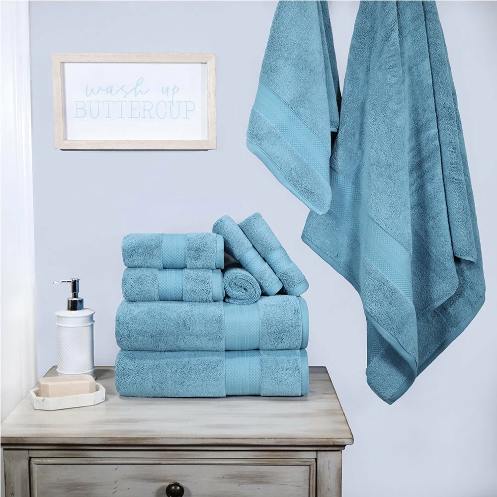 - TIMELESS DESIGN – This set comes in your choice of multiple festive colors. Towels are available in black, cascade, chocolate, emberglow, gray, ivory, maroon, navy blue, pacific blue, and white that make the decorating options endless