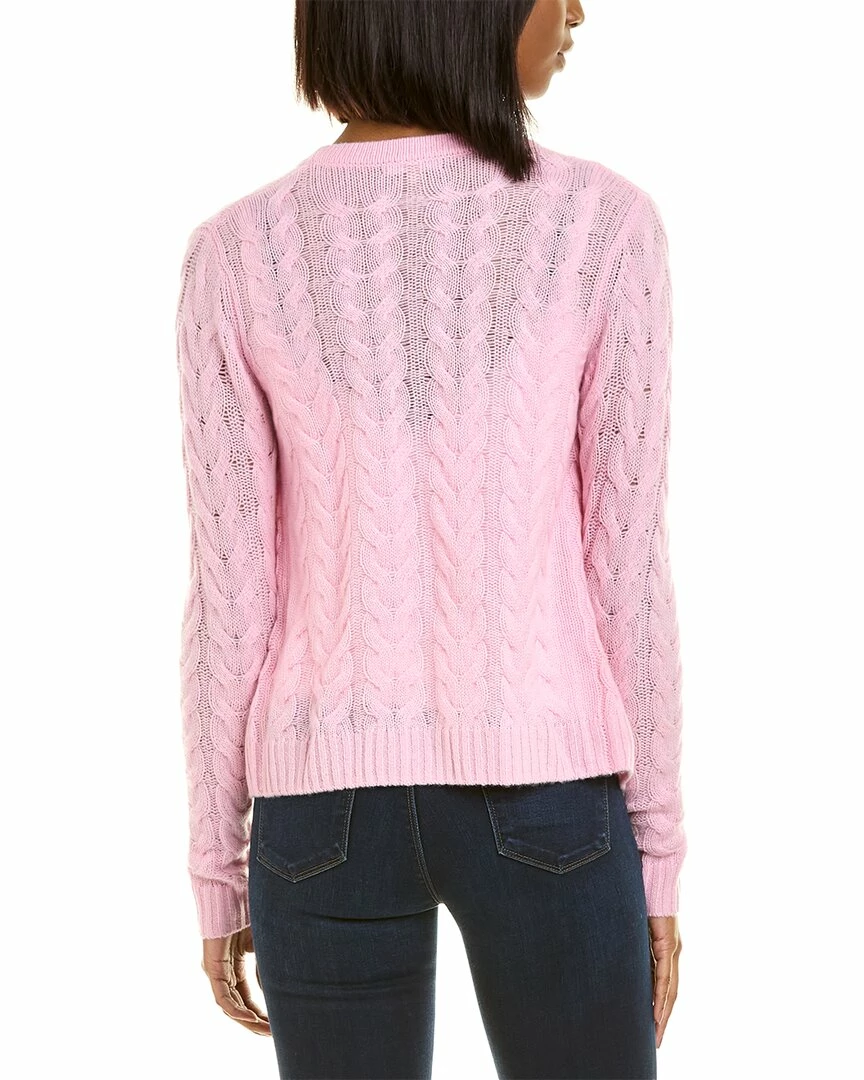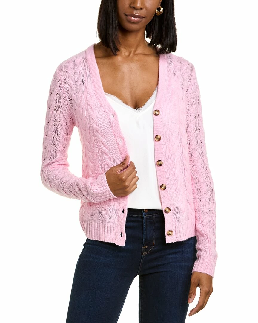 - Cable V-Neck Cashmere Cardigan In Pink With Cable Knit, V-Neck And Ribbed Trim