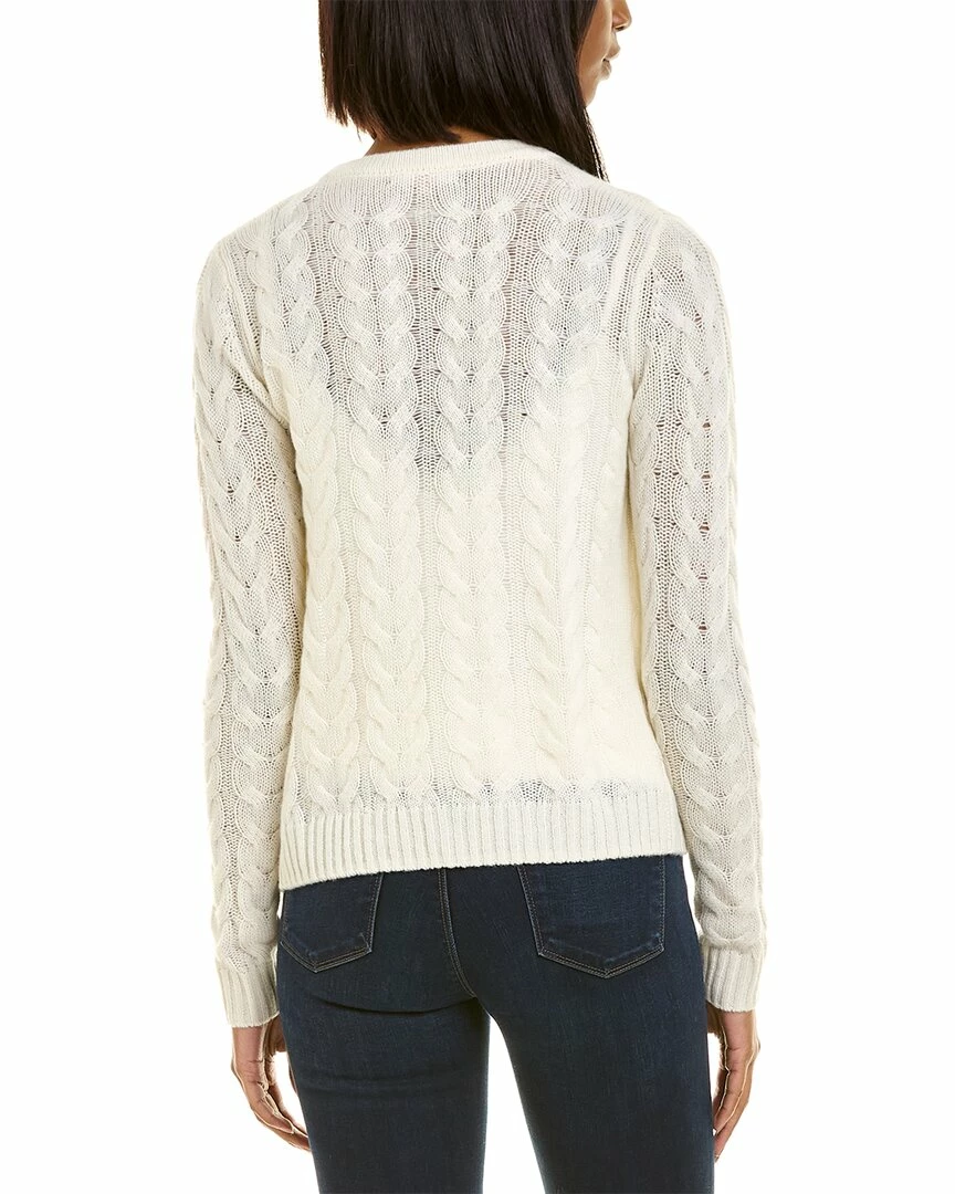 - Cable V-Neck Cashmere Cardigan In White With Cable Knit, V-Neck And Ribbed Trim
