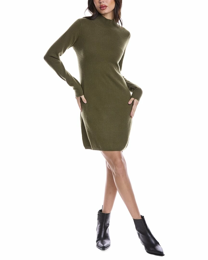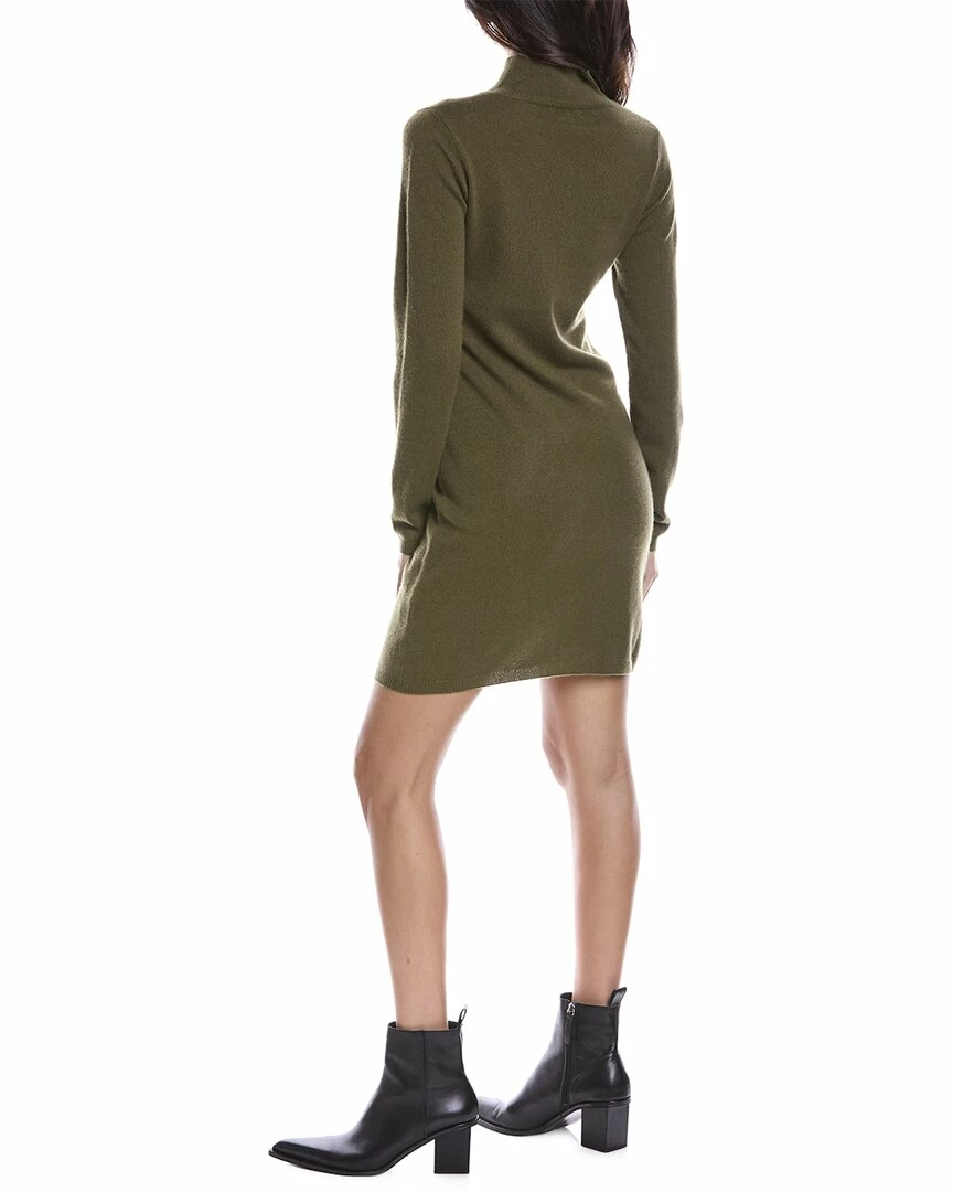 - Cashmere Sweaterdress In Olive With Turtleneck And Ribbed Trim