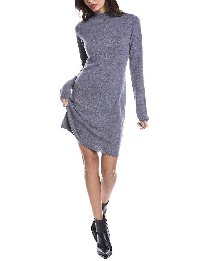- Cashmere Sweaterdress In Dark Grey With Turtleneck And Ribbed Trim