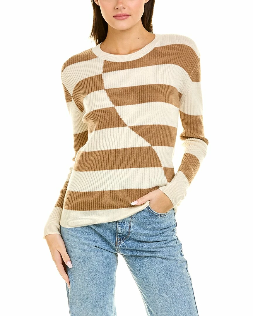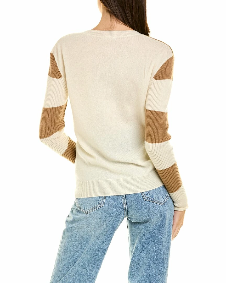 - Colorblock Cashmere Sweater In White And Brown With Ribbed Design