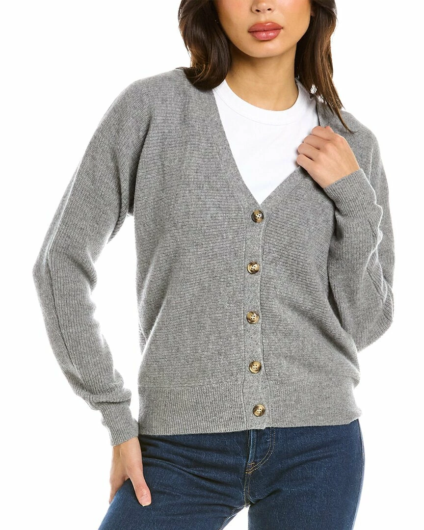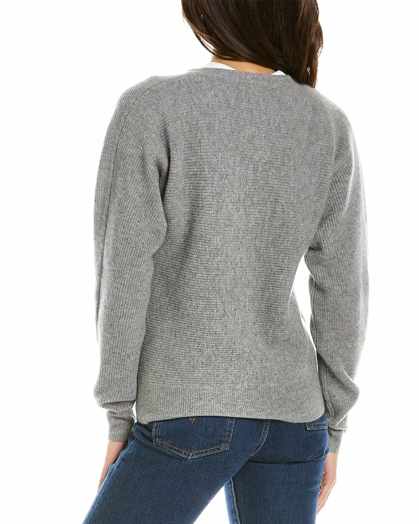 - Fancy Stitch Cashmere Sweater In Grey With Ribbed Knit And V-Neck