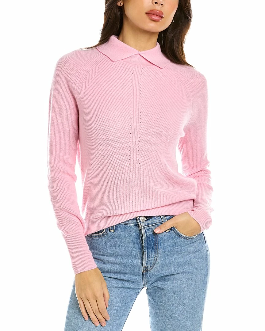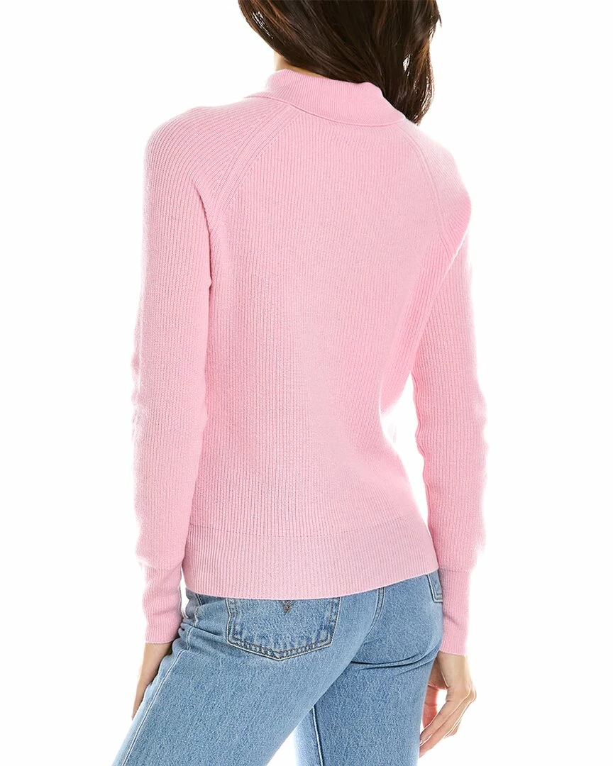 - Mock Neck Cashmere Pullover In Pink With Spread Collar