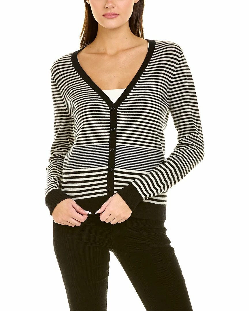 - Striped Cashmere Cardigan In Black And White With Ribbed Trim