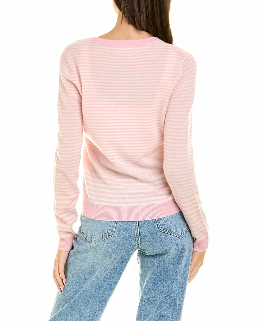 - Striped Cashmere Cardigan In Pink And White With Ribbed Trim